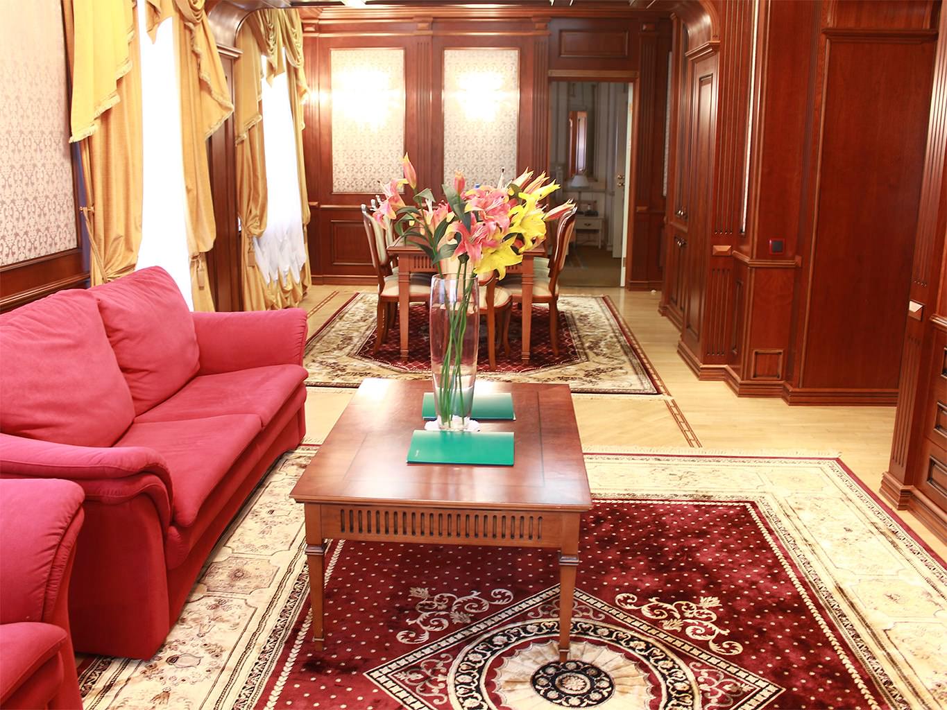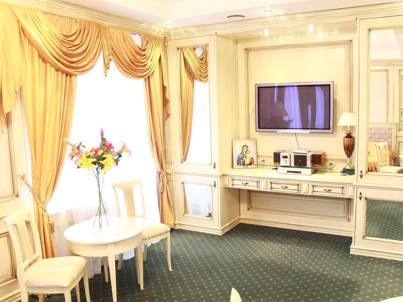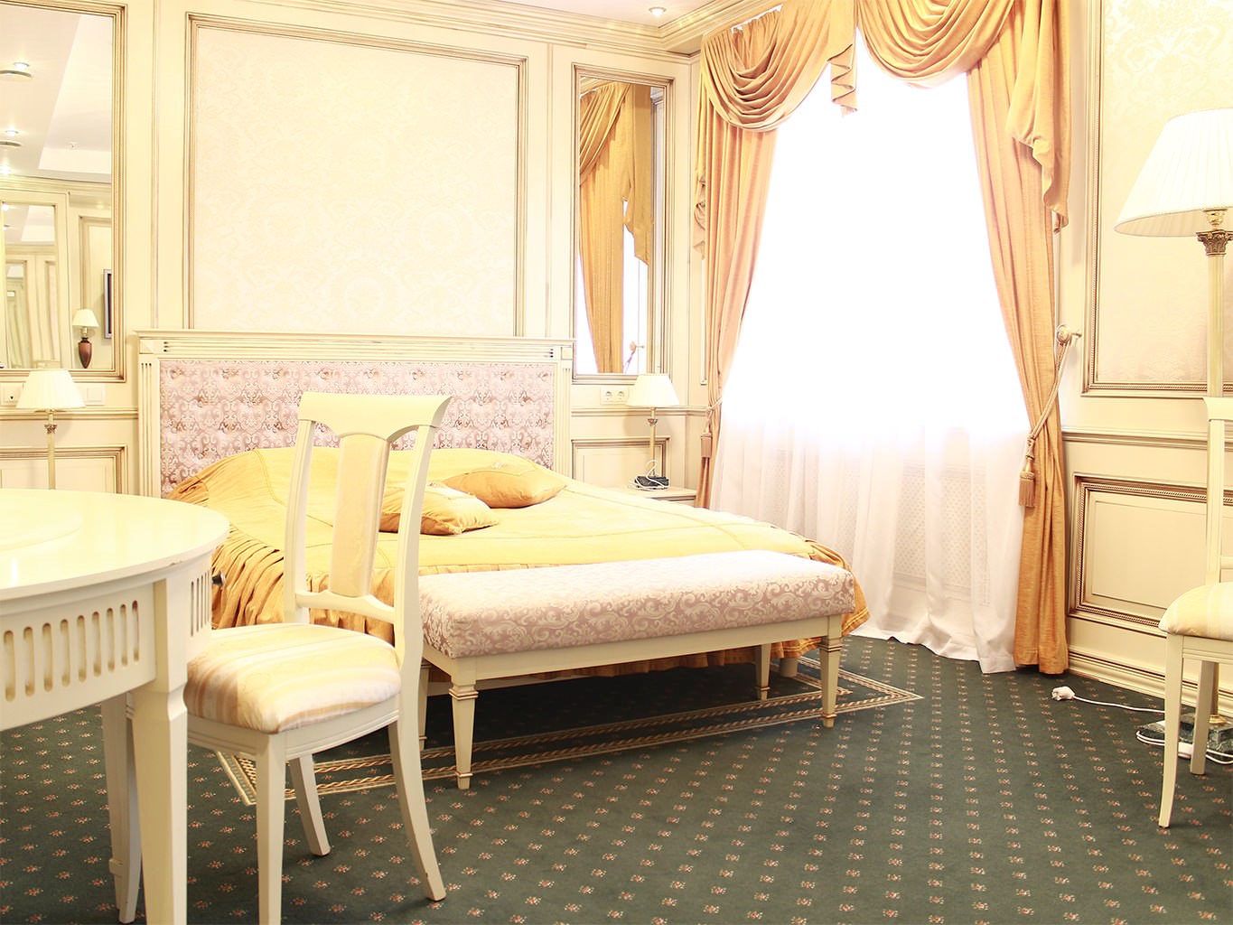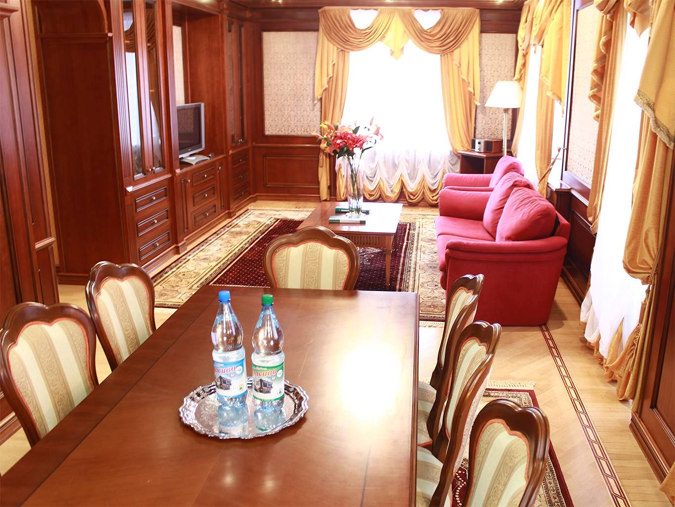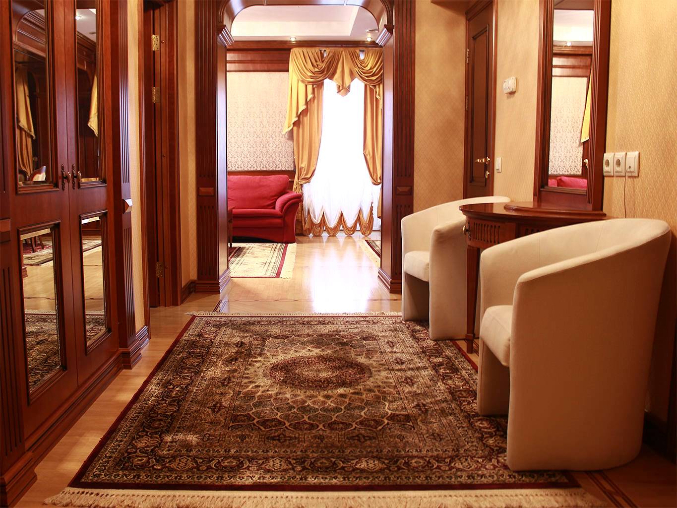 4 осн. места. 1 доп. место. Мебель: зеркало, кресла, кровать двуспальная (2), кухонная мебель, набор мягкой мебели, прикроватные тумбочки, стол, столик журнальный, стулья, шкаф. Оборудование: кондиционер, набор посуды, сейф, телевизор ЖК, телефон, утюг, холодильник, электрочайник. Санузел: с ванной, тапочки, туалетные принадлежности, фен, халат. Сервис: Wi-Fi бесплатно, карточная система замков, мини-бар, смена полотенец, смена постельного белья, уборка номера.